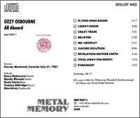 『ANOTHER TRIBUTE』と同様、1982年05月02日放送分をソースにしたブートながら、こちらにはしっかりと“Mr. Crowley”も収録されています(ただし音質は『ANOTHER TRIBUTE』にやや劣ります)。レーベルが同じ“METAL MEMORY RECORDS”であり、カタログナンバーが近いこと、更にはどちらにも実際とは異なる収録日・会場名が打たれていたことから察するに(こちらは「1981年07月31日 モントリオール・フォーラム公演」と誤記)、恐らくは収録曲、音質の両面でどちらかにリリースを絞ることができず、若干タイミングをずらして出荷しどちらも買わせてしまおう、という魂胆が制作業者に働いたに違いありません。そして見事に、私は両方買わされてしまったワケです(笑)。